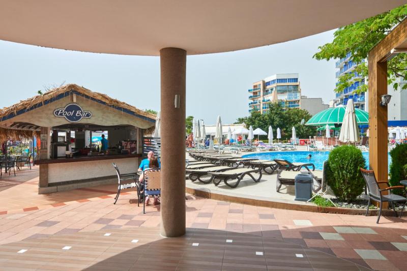 Hostům jsou k dispozici 1 hlavní restaurace a 1 à la carte restaurace, 4 výtahy, lobby bar, velký bazén s barem, směnárna, fitness, stolní tenis, minimarket. Za poplatek je k dispozici trezor, půjčovna kol, biliard, masáže, prádelna, půjčovna aut. Wi-fi připojení zdarma. Pro děti hotel nabízí dětské brouzdaliště, mini club pro děti 4-12 let, dětské animace, dětský bufet. Hotel již nemá bar na pláži, je však možné si vzít nápoje v baru u bazénu a donést si je s sebou na pláž. Pro hosty hotelu slunečník se dvěma lehátky na pláži zdarma (pouze omezený počet lehátek a slunečníků). Na vratnou zálohu 25 leva možnost zapůjčení plážových osušek (9:00 - 11:00 a 14:00 - 16:00).